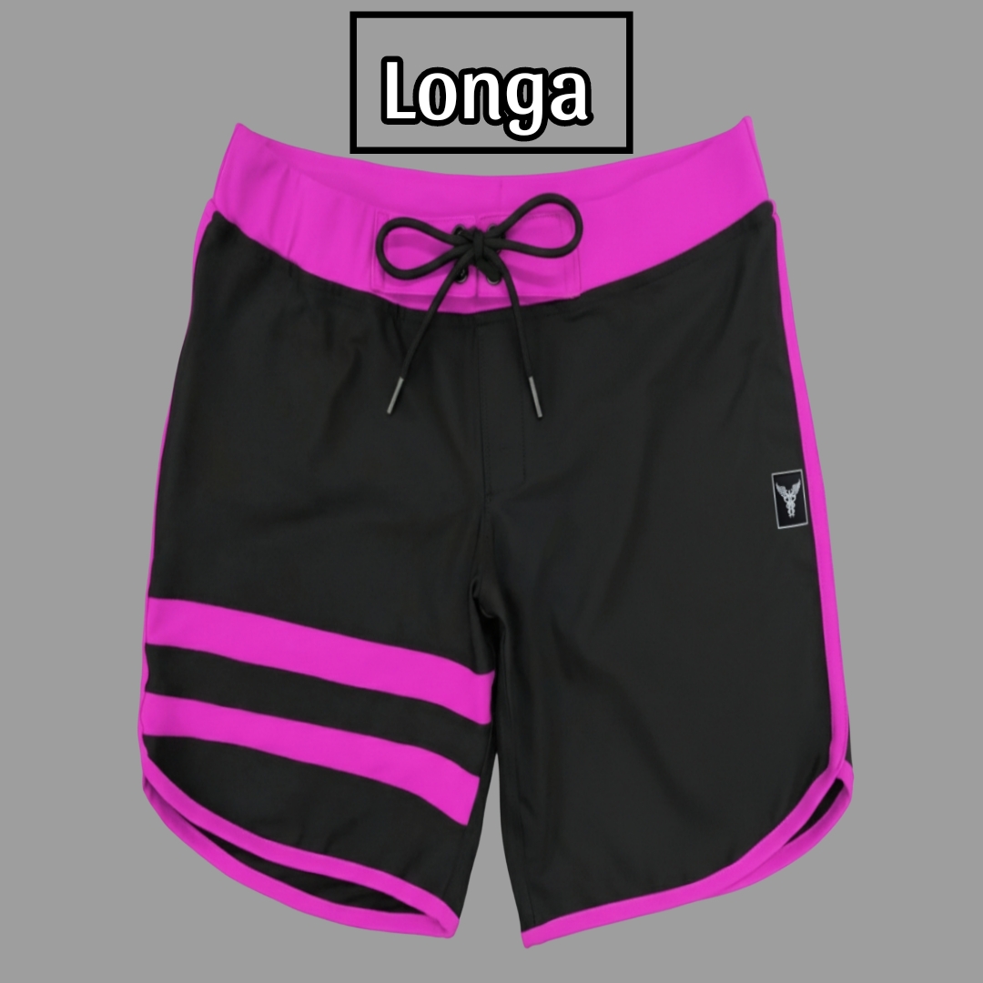 Bermuda Men's Physique Longa Preto com Pink Fluor e Listras