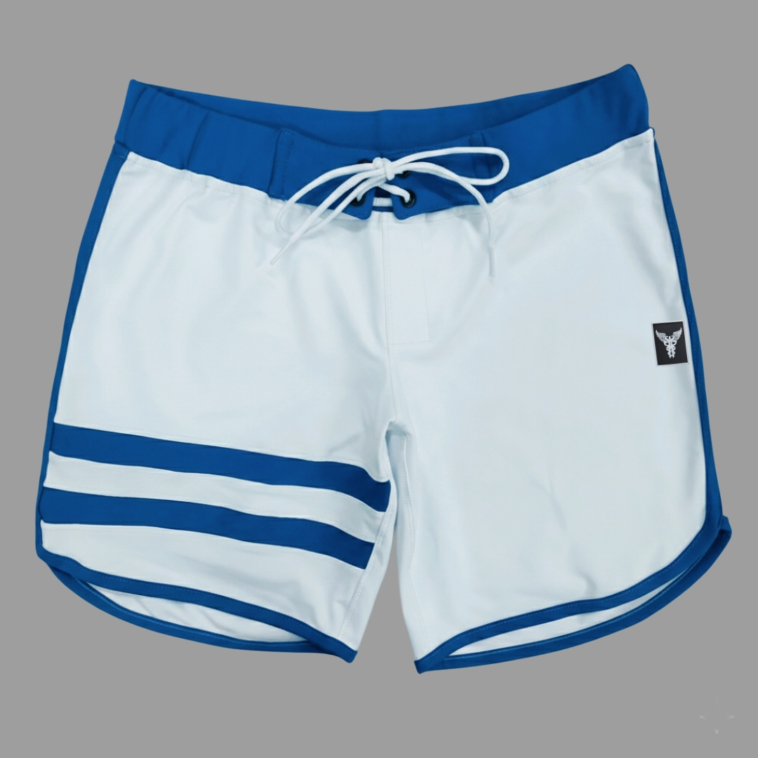 Bermuda Men's Physique Curta Branca com Azul Índigo e Listras