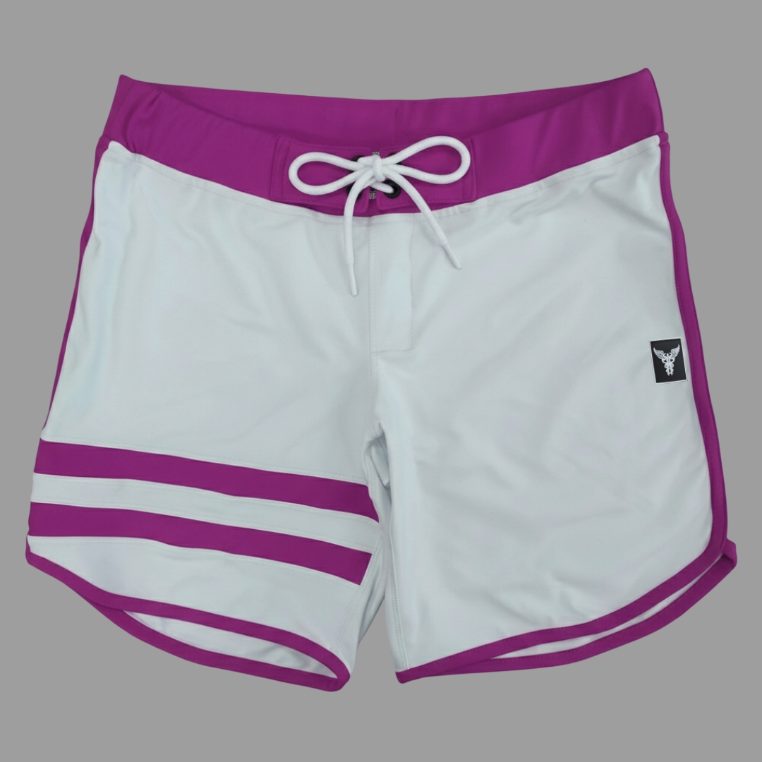 Bermuda Men's Physique Curta Branca com Fúcsia e Listras