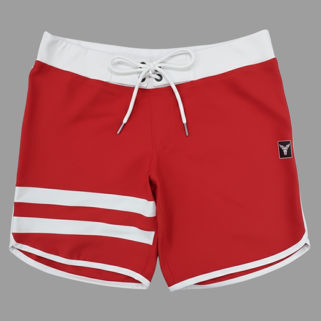 Bermuda Men's Physique Curta Vermelha com Branco e Listras