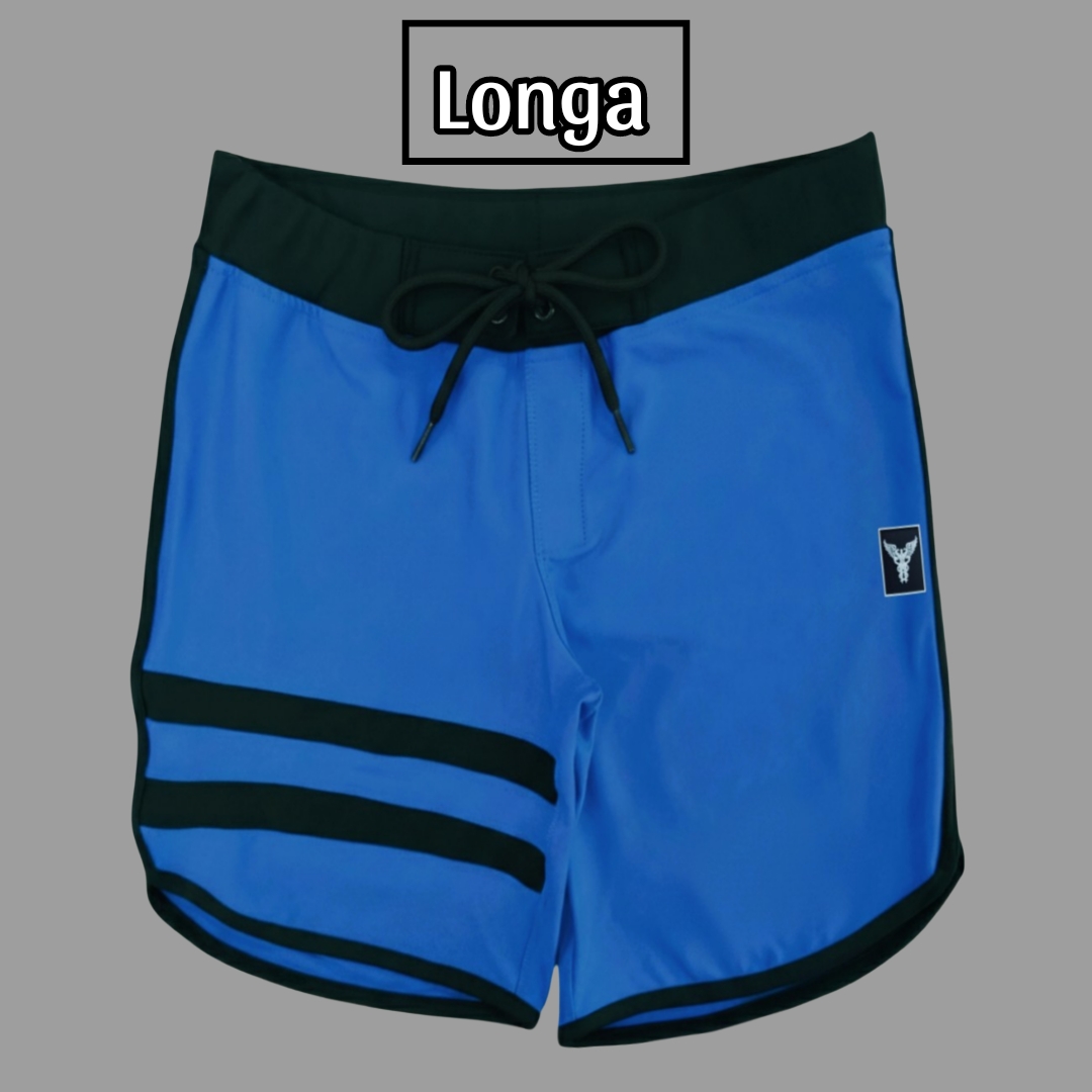 Bermuda Men's Physique Longa Azul Índigo com Preto e Listras