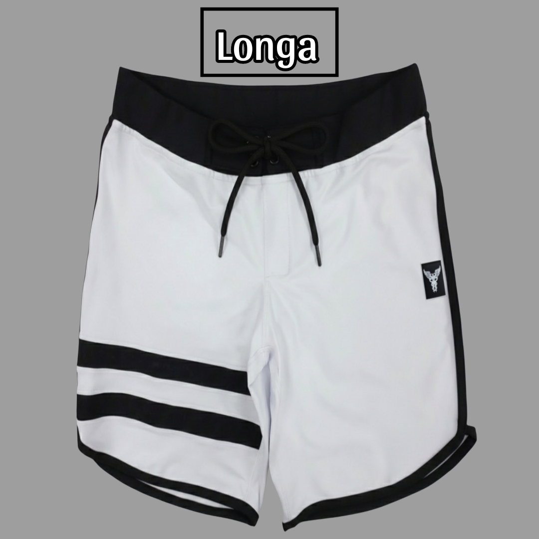 Bermuda Men's Physique Longa Branca com Preto e Listras