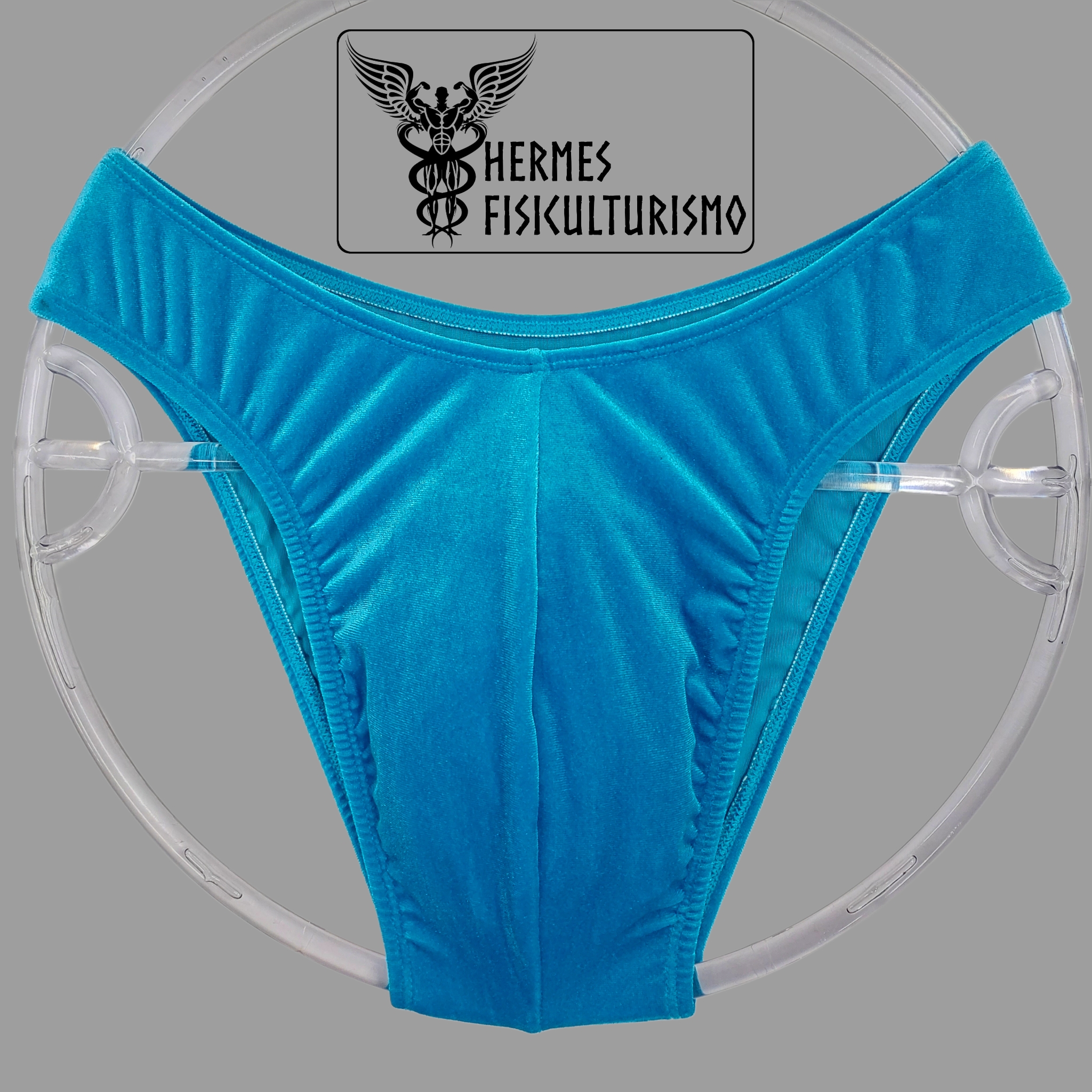 Sunga Bodybuilder Azul Turquesa em Veludo - Corte IFBB
