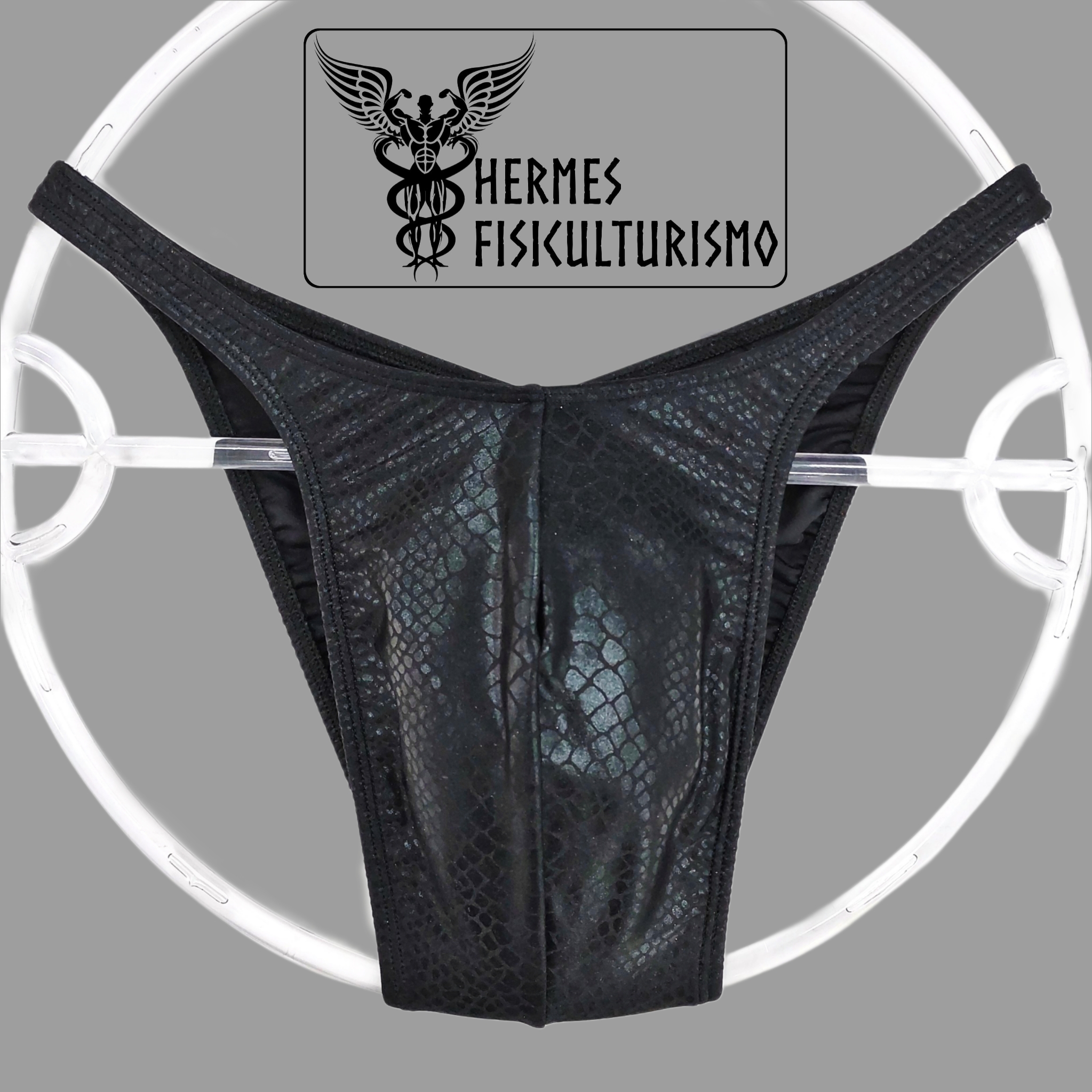 Sunga Bodybuilder Preta Brilhante Escama Cobra - Corte Pró