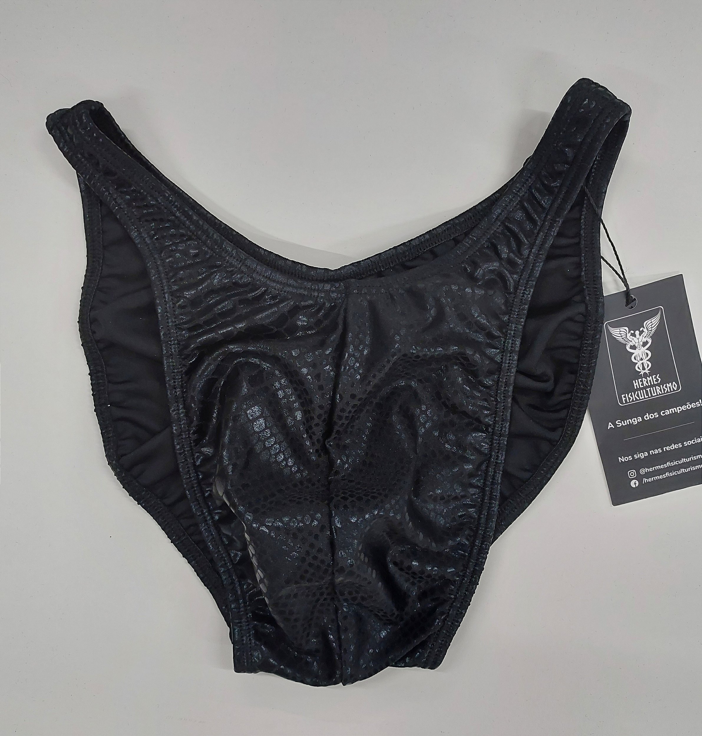 Sunga Bodybuilder - Preta Escama de Cobra - Tradicional - M - Com costura