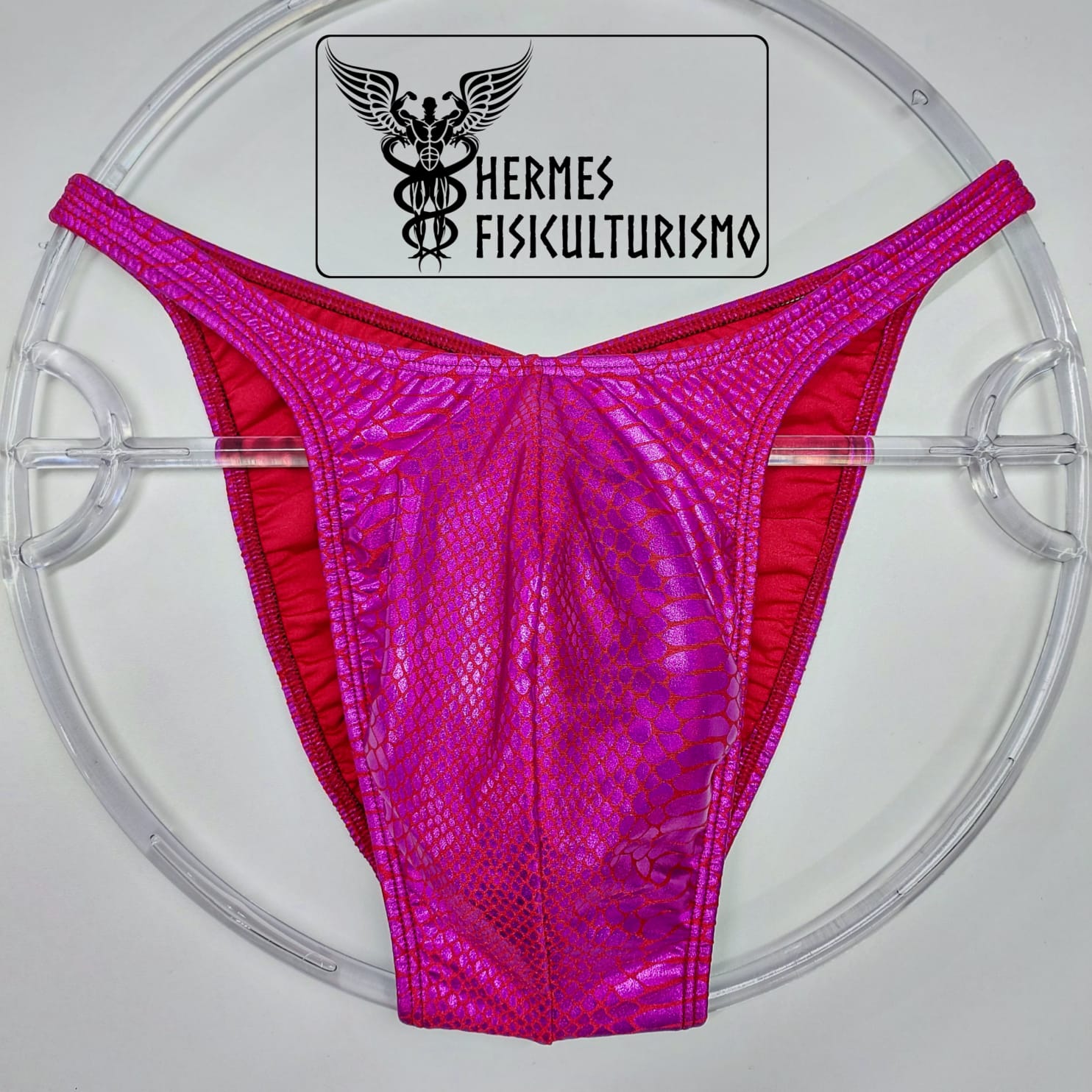 Sunga Bodybuilder Rosa com Vermelho Escama Cobra - Corte Pró