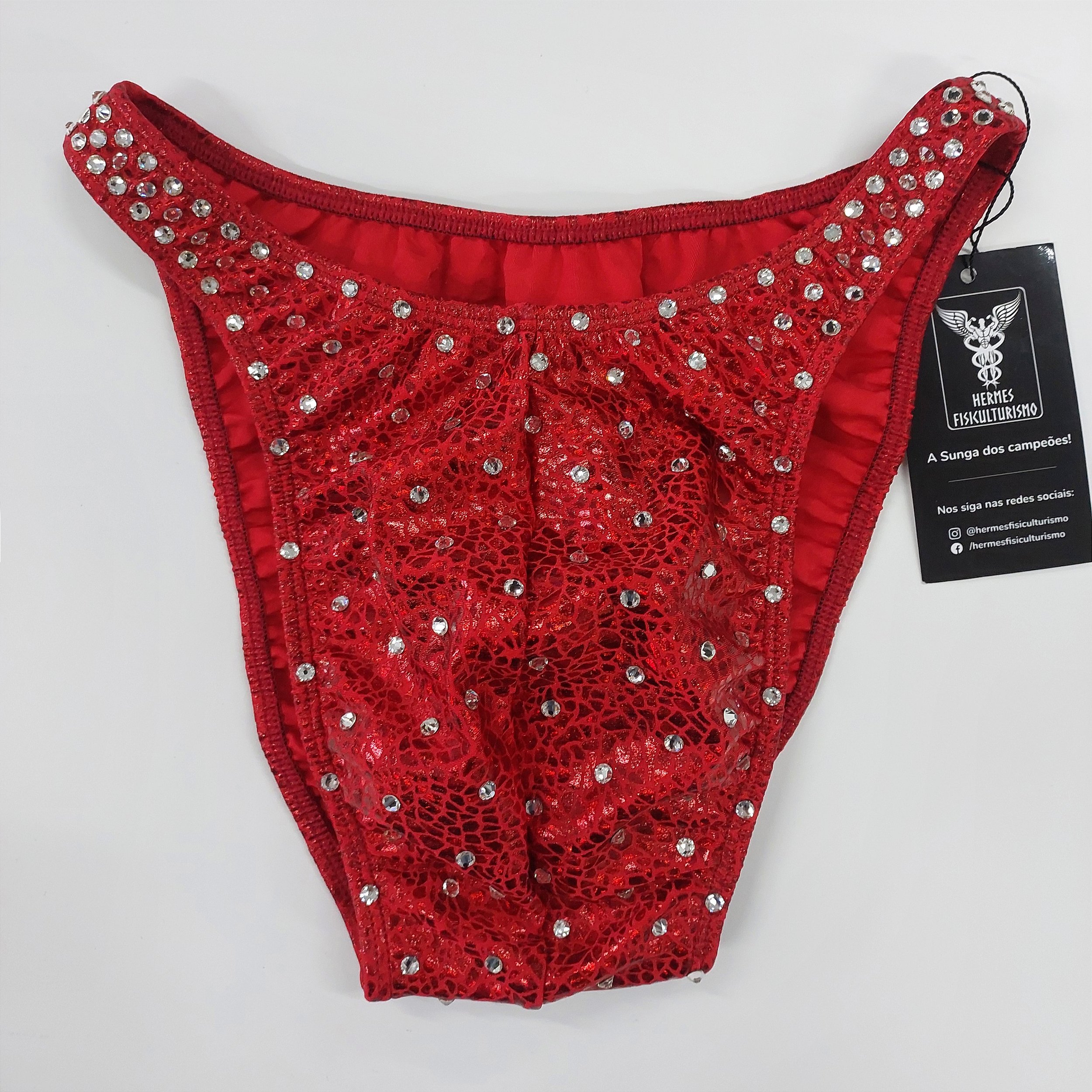 Sunga Bodybuilder – Tradicional – GG – Vermelha Réptil com cristais – Sem costura