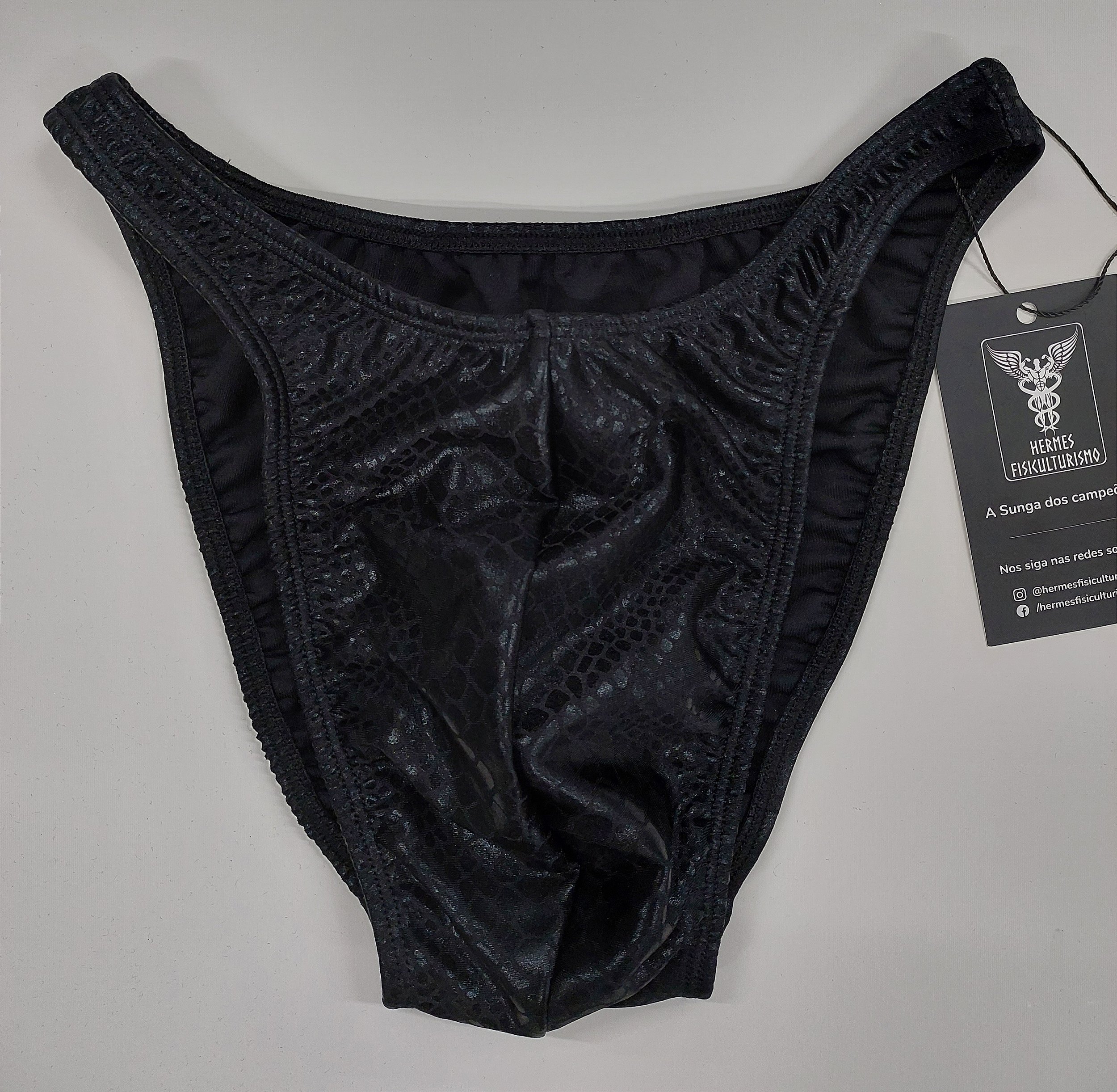 Sunga Bodybuilder – Tradicional – P – Preta Brilhante Cobra – Sem costura