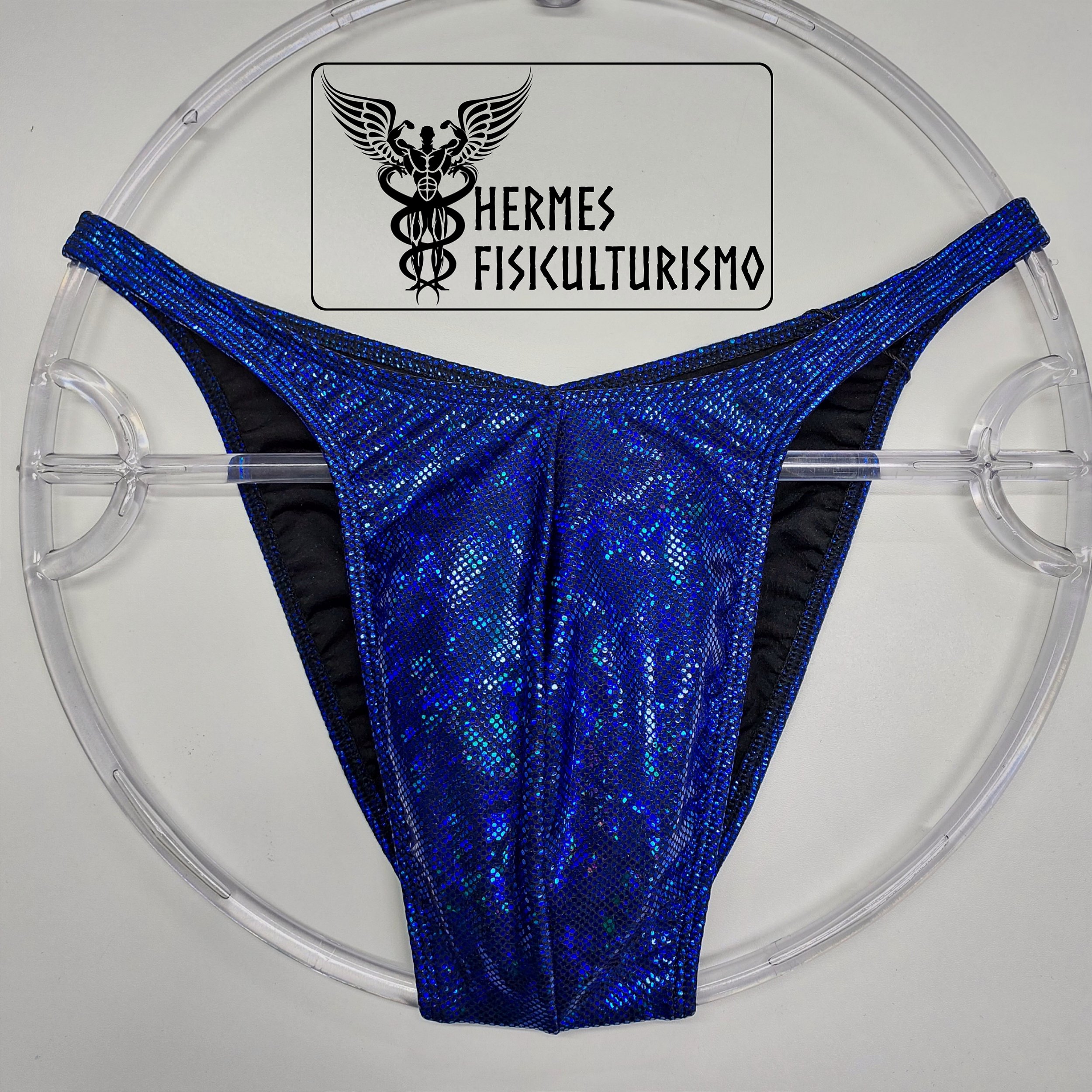 Sunga Bodybuilder Azul com Preto Holográfica - Corte Pró